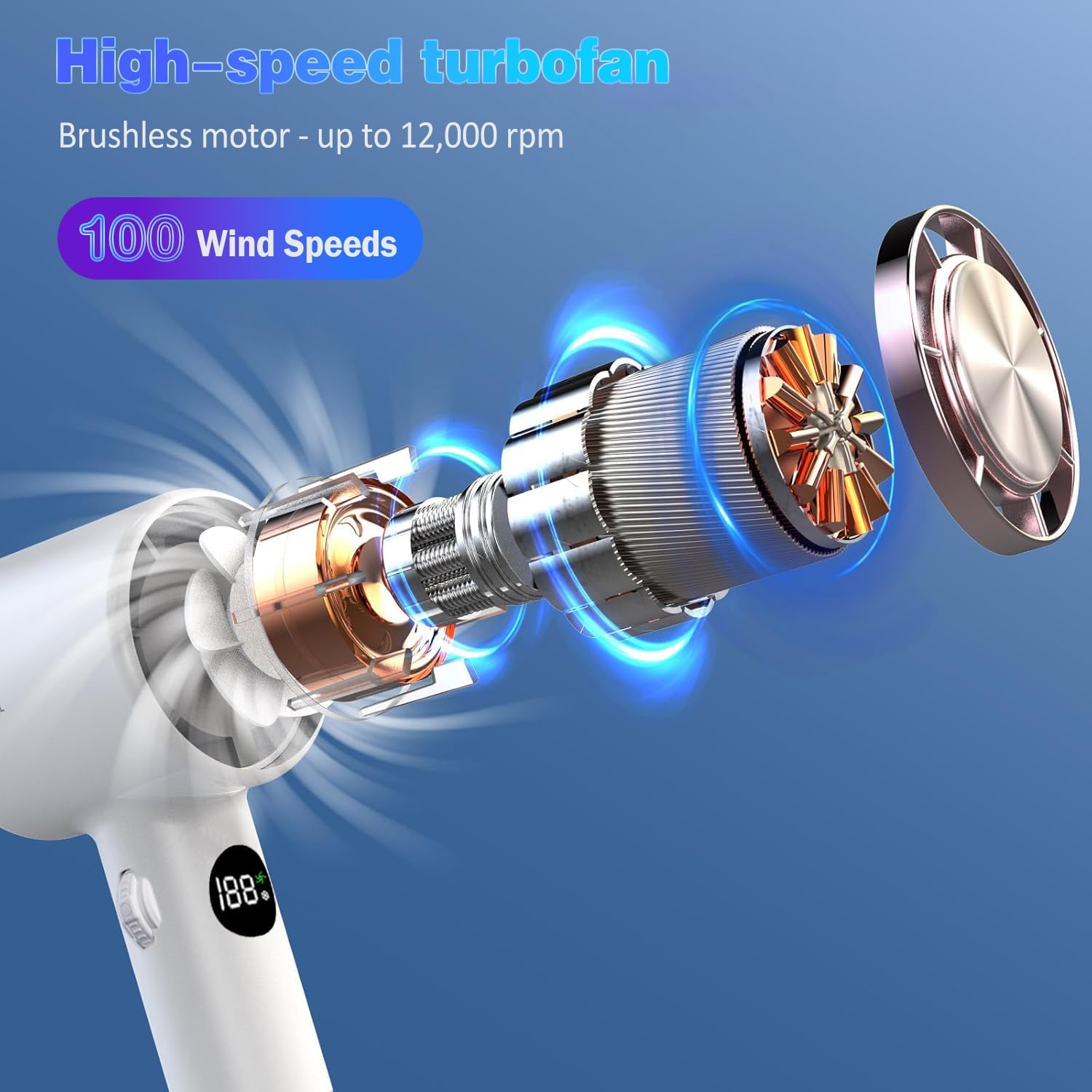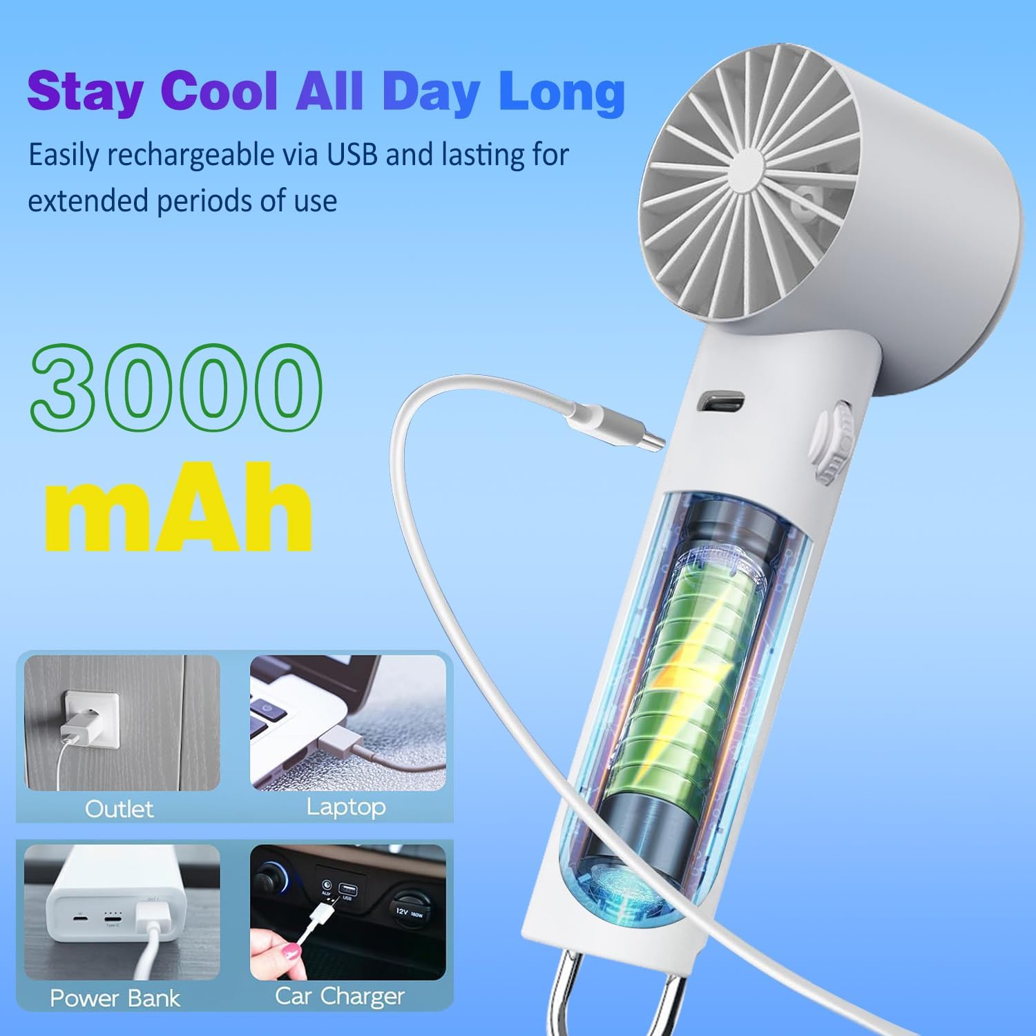 - 【Powerful Brushless Motor】The portable handheld fan is equipped with upgraded brushless motor, which can be up to 12,000 RPM. Provides stronger wind power and faster cooling compared to the traditional small fan. The mini fan can be customized with 1 – 100 wind speeds. can quickly adjust the wind level.