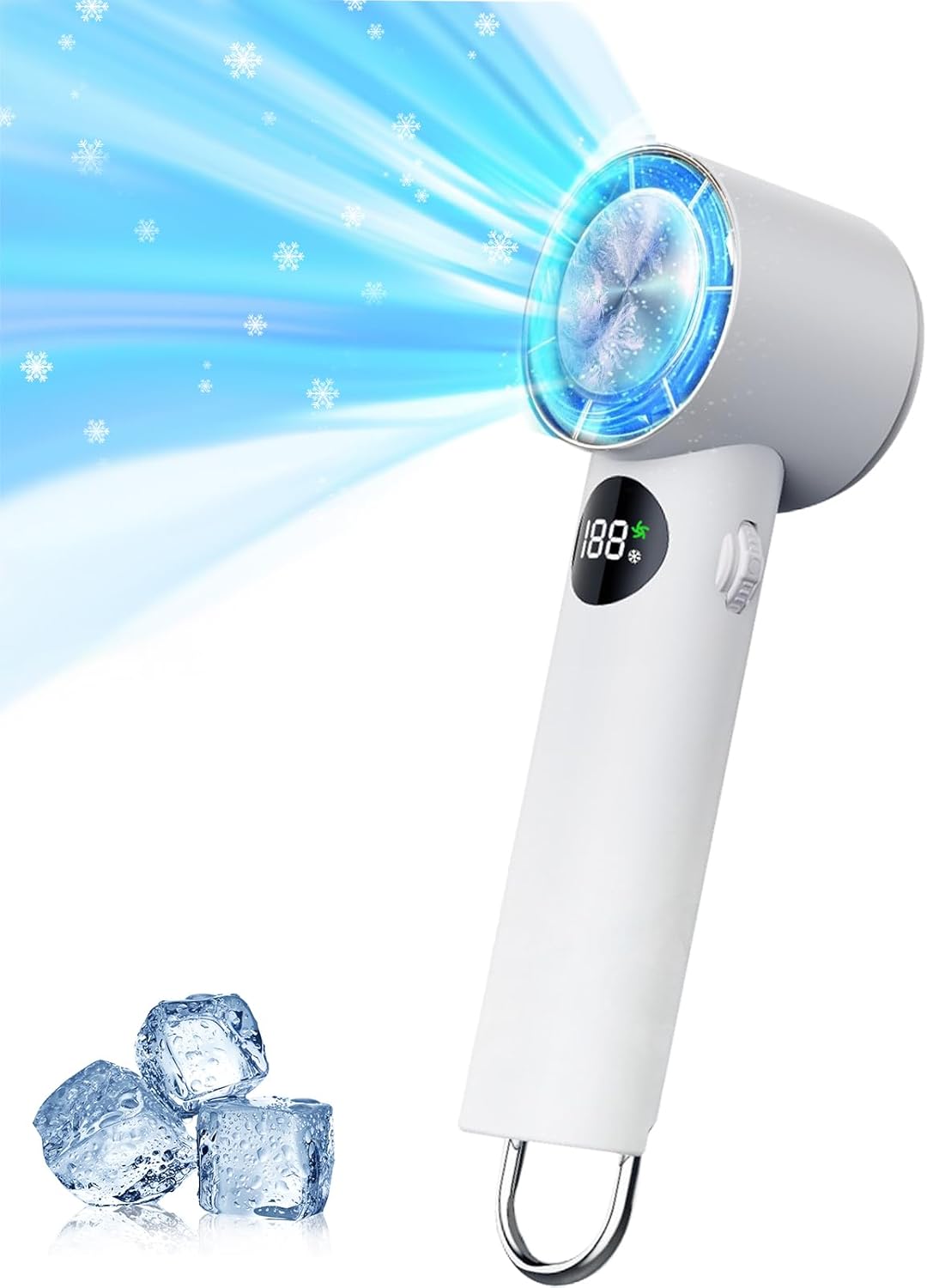 - 【Ice Contact Cooling】Yaberry Grove pad cooler personal fan handheld make you feel cool.Compress it to your face, wrist or neck area where blood circulation is more active, it gradually cool your whole body down!The longer it (by long pressing Freezing Mode) operates, the colder it will get, Lowest 8°!