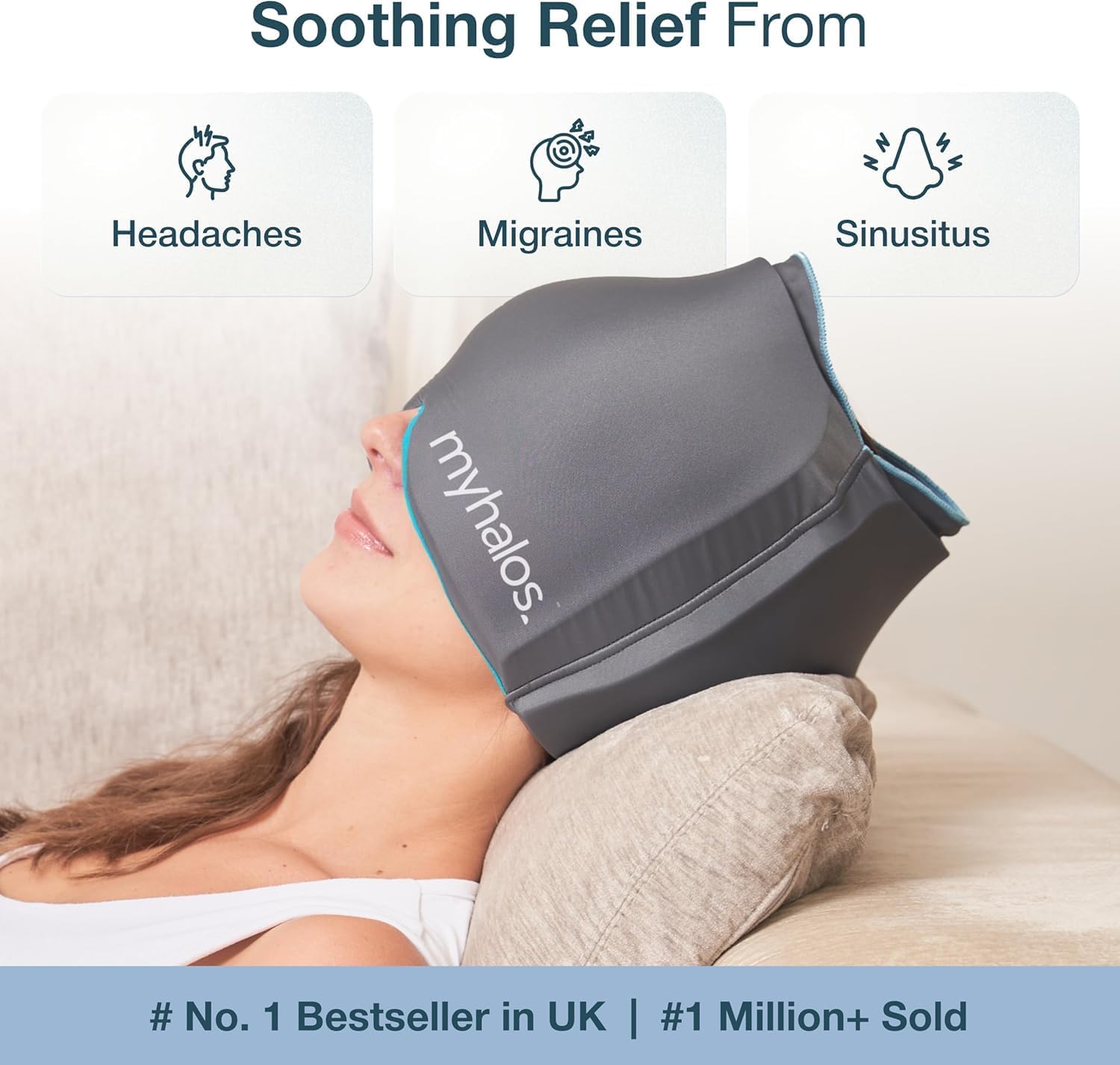- The Power of Cold Therapy – When your head is pounding, you need a cooling ice hat that lasts longer than regular liquid ice packs and doesn’t leave your head wet! The Halo sinus pressure relief mask can be worn as a migraine ice head wrap or ice pack head wrap.