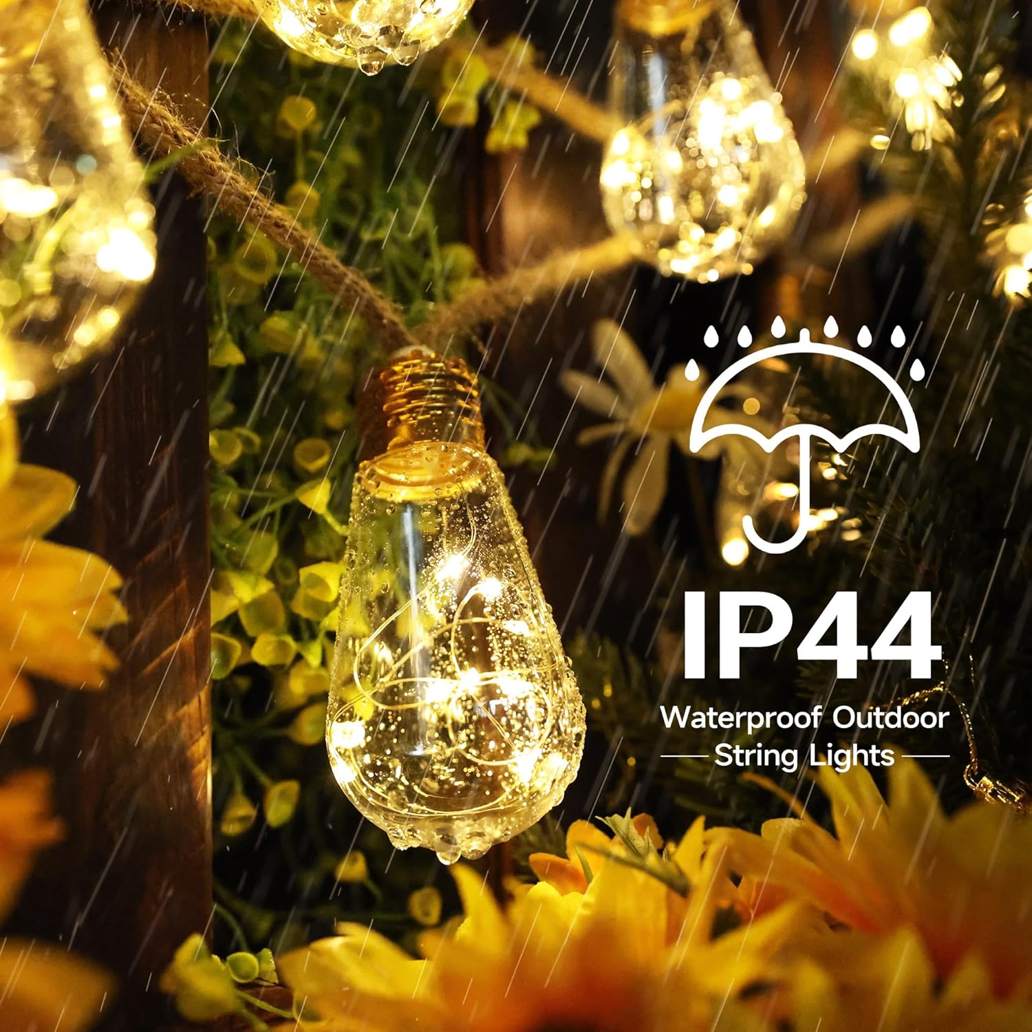 - IP44 Waterproof & Shatterproof: The led string lights are suitable for indoor & outdoor. Fully weatherproof, no matter what weather, it still gives soft, romantic light. The outdoor bulbs string lights are made of tough and shatterproof plastic. More shatterproof and safe to use.
